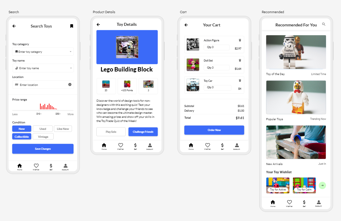 - Toy Listing with Photos and Descriptions: Users can create listings with images and detailed descriptions of toys they wish to trade.